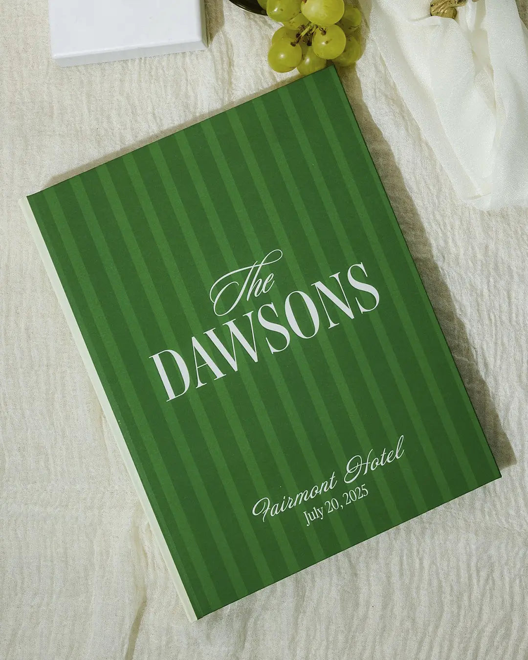 Names, date, location — even some extra special little details on the back cover. Because your guest book should be as personal as your day.