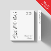 Evelyn is elegance in its purest form — crisp white with flowing script and refined serif type for a romantic-meets-modern feel. Designed as a non-personalised style, it’s ready to ship and ready to become part of your day. The perfect choice for couples who love clean, timeless design that will look just as beautiful on display as it does filled with heartfelt messages.